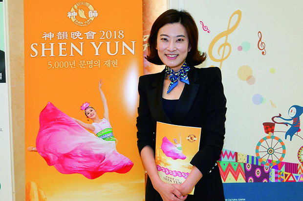 2018年4月14日晚,韓國頂尖交響樂團、韓國愛樂樂團(methodphi)的總監兼總指揮孫瑩彩觀賞神韻國際藝術團在韓國釜山文化會館的演出。(攝影/戴德蔓)