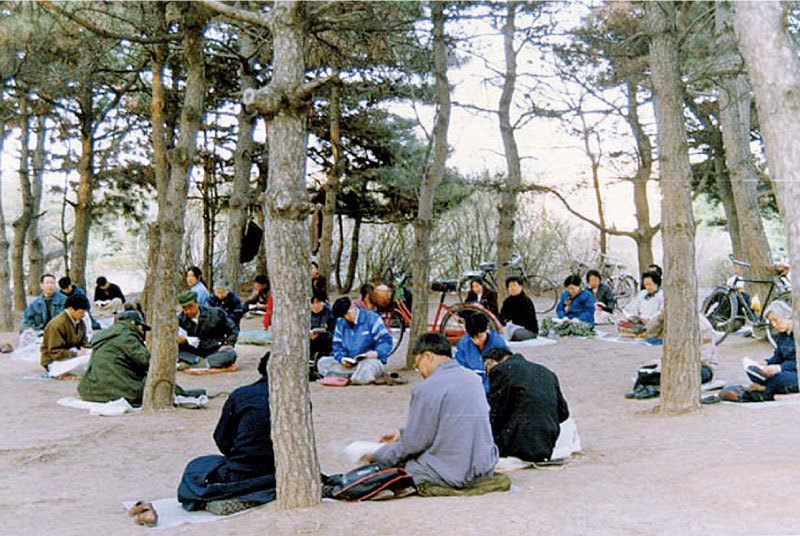 1998年3月,李季明萬分幸運的得到了《轉法輪》一書。一捧起書,就覺得一股暖流從頭灌到腳,渾身暖融融地很舒適。圖為迫害之前,長春法輪功學員一起學法。(明慧網)