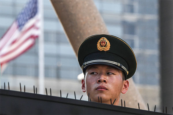 《人民日報》8月29日發表評論文章指「中美關係將發生深刻調整」,公開傳遞北戴河會議後中共達成的所謂共識。圖為2018年7月26日美國大使館附近發生爆炸。(AFP)