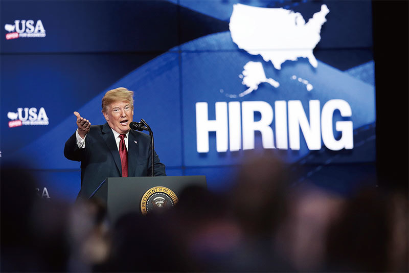特朗普8月30日回應北京有關熬贏美國的言論說,「我們的國家財政比任何時候都強大。」圖為特朗普6月28日出席鴻海威州廠奠基儀式。(Getty Images)