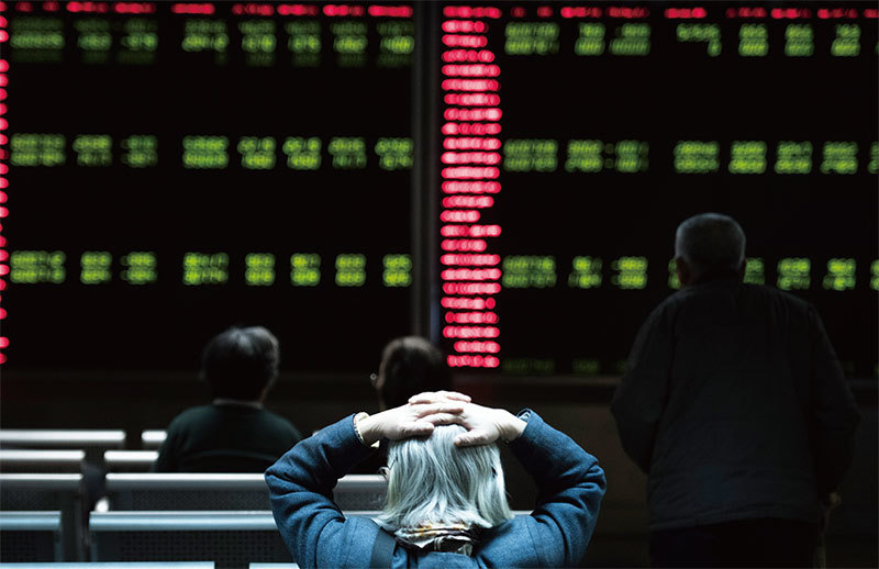 近半年多時間,京東市值蒸發高達280億美元;騰訊市值蒸發1600億美元。圖為北京股市下跌。(AFP)