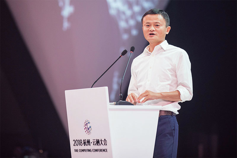 9月10日,馬雲宣布將於一年後辭去董事長職務,接替他的將是現任阿里巴巴首席執行官張勇。圖為馬雲出席9月19日阿里巴巴科技展會。(AFP)