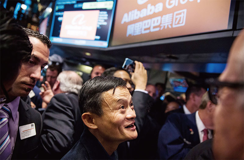 阿里巴巴為美國上市公司,而旗下螞蟻金服的三輪集資也都是海外機構,馬雲已把錢轉出國外?圖為2014年3月16日,阿里巴巴集團宣布啟動在美國的上市事宜。(Getty Images)
