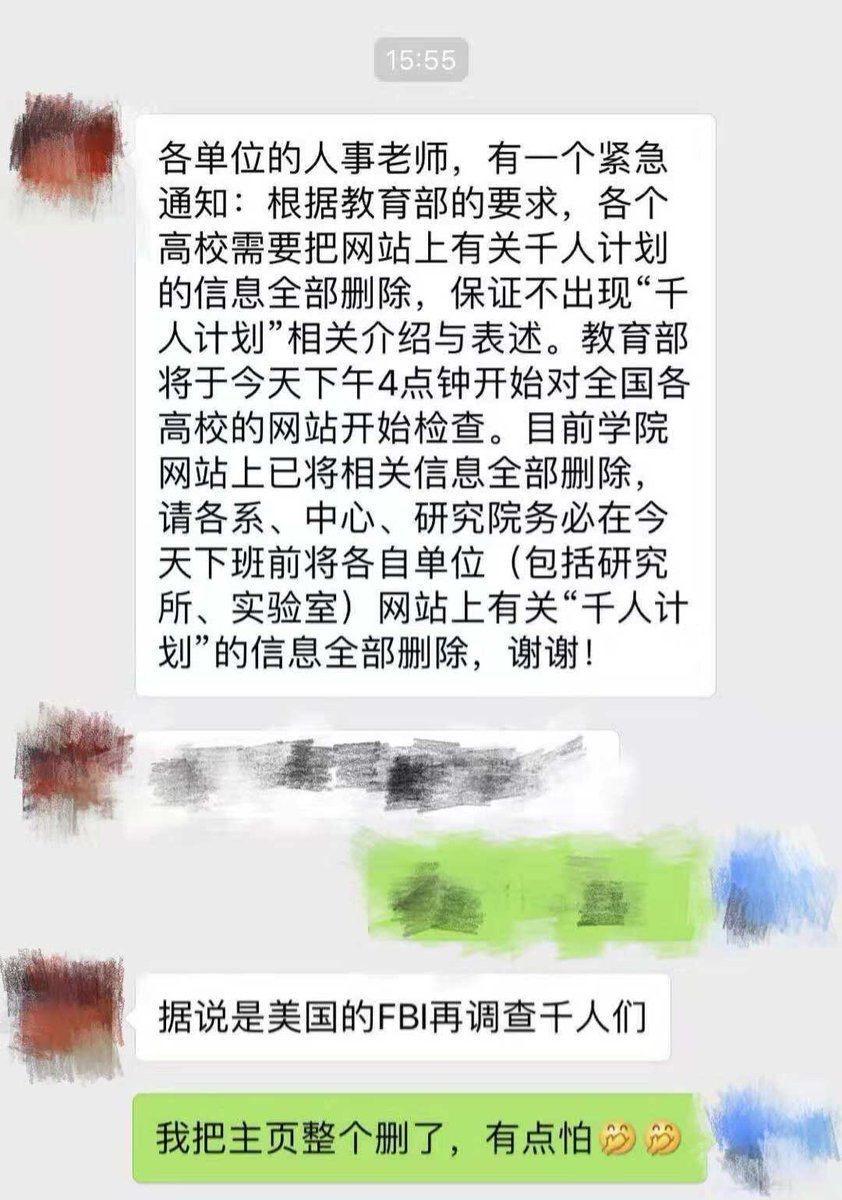 而9月底,網路就已經有曝光檔指出,中共開始對「千人計劃」毀屍滅跡,要求高校把千人計劃相關檔通通移除。