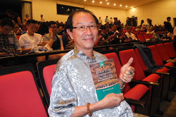 國際宗教音樂臺臺長潘智航觀賞神韻交響樂團在臺南文化中心演藝廳的演出。(攝影/龍芳)