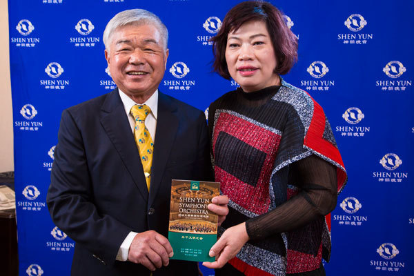 跆拳道協會理事長張永文賢伉儷觀賞神韻交響樂團在臺南市立文化中心的演出。(攝影/陳霆)