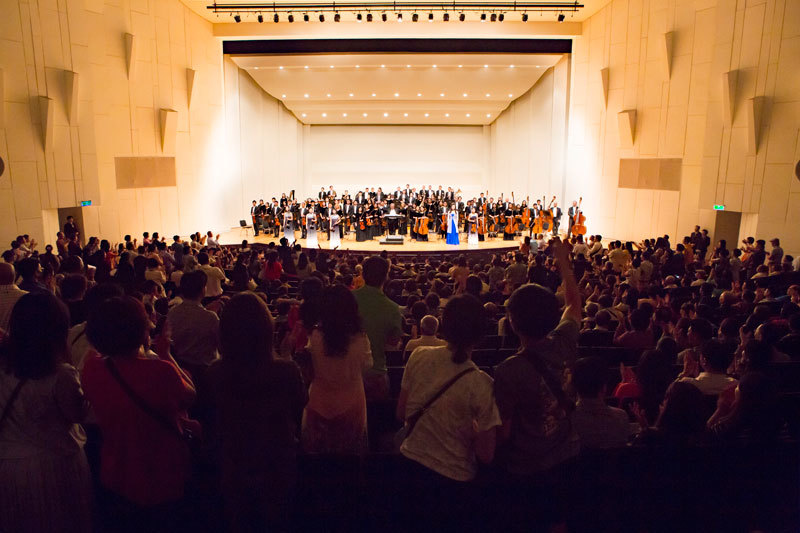 2018年9月27日晚間,神韻交響樂團在臺南市立文化中心的演出,謝幕時觀眾紛紛起立致意,並大喊「安可」。(攝影/陳霆)