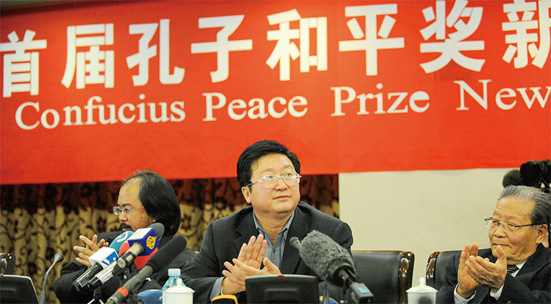 美國政府一名高層代表9月26日表示,中共對美國內部事務的干涉,已達到了令人無法接受的程度。圖為中共文化部有合作關係的孔子和平獎。(AFP)