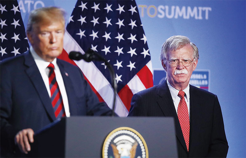 對華鷹派的白宮國家安全顧問博爾頓(右)在說服特朗普對中共採取更強硬態度方面發揮了關鍵作用。(Getty Images)