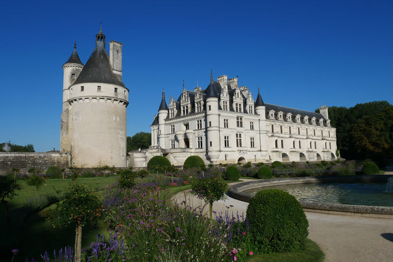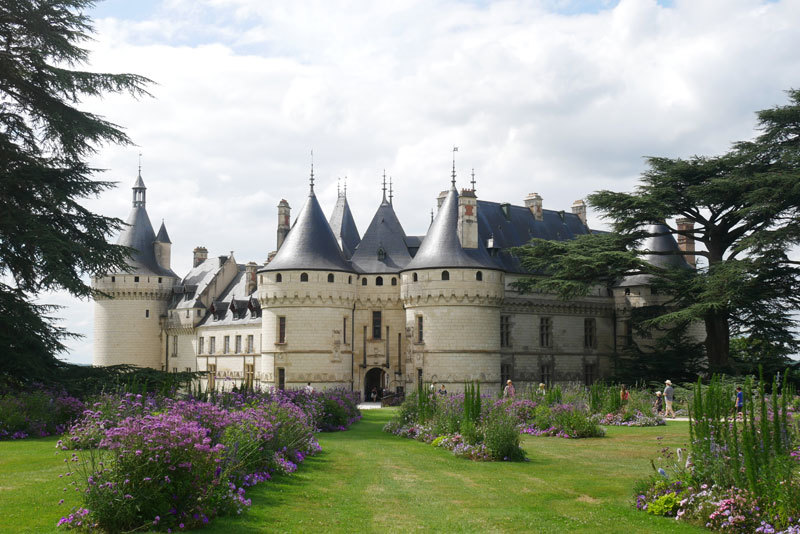 從花園遠眺盧瓦爾河畔肖蒙城堡。