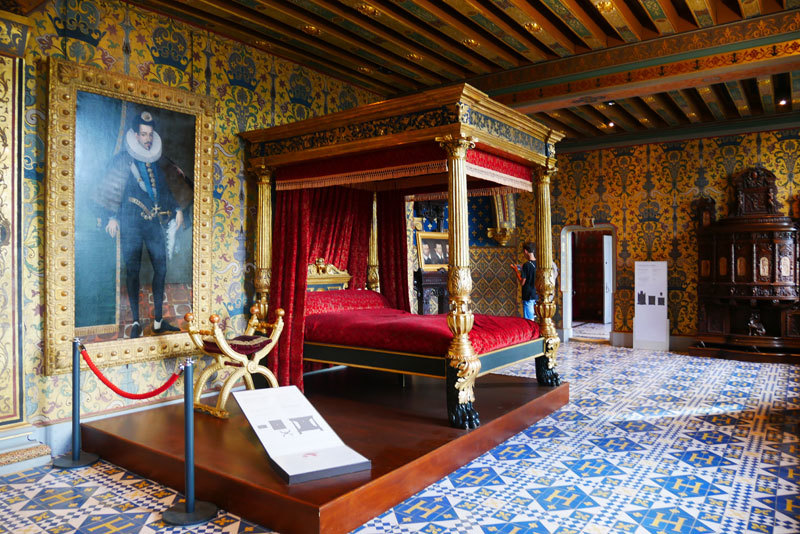 城堡建於16世紀初,建築集法式和意大利藝術風格於一體。步入城門內,一抬頭眼前一亮,只見臺階上方矗立著一個個精細的肖像雕塑,臺階兩邊沿著牆壁雕琢出一條獨特的扶手,周邊還伴隨各種精美雕塑,內部建築和房間布置的每個細節都具有很高的欣賞價值。