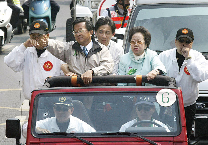 知情人士披露,孟宏偉參與製造臺灣三一九槍擊案,涉嫌謀殺時任臺灣總統陳水扁和副總統呂秀蓮。圖為2004年3月19日總統大選前一天陳水扁與呂秀蓮在車上造勢遭遇槍擊。(AFP)