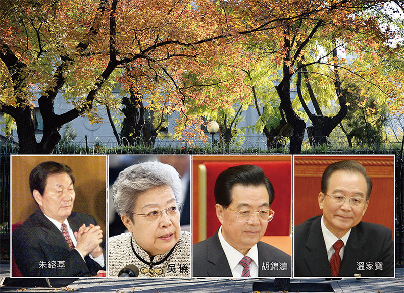 中共政局敏感時刻,習陣營元老胡錦濤、朱鎔基、溫家寶、吳儀「露面」,與江派高危高官抱團現身形成對陣態勢;中共高層博弈暗潮洶湧。(新紀元合成圖)
