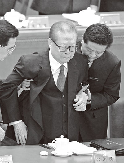 有海外媒體引述中南海消息稱:江澤民健康頻頻亮起「紅燈」,甚至遭遇多次病危險情。江澤民出席19大時,幾乎是被架進會場落座。(AFP)