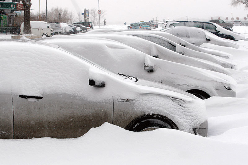 9月26日,習近平在黑龍江中車齊車集團考察,重提「自力更生」的重要性。圖為黑龍江哈爾濱大雪覆蓋汽車。(AFP)