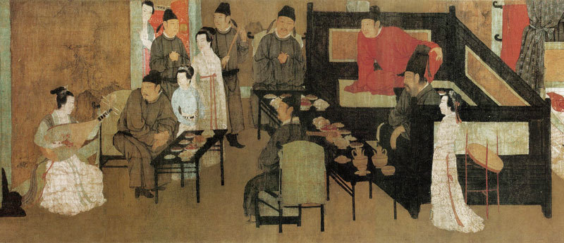 南唐人物畫家顧閎中畫作〈韓熙載夜宴圖〉(局部)。(公有領域)