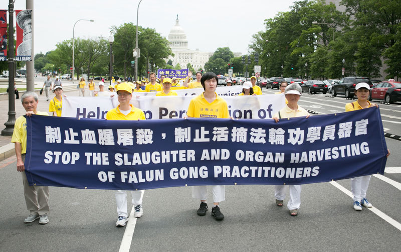 2018年6月20日,全球部分法輪功學員聚集在美國首府華盛頓DC,舉行反迫害集會遊行,各界正義人士將到場聲援。(李莎/大紀元)