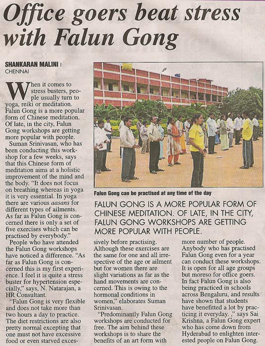 2007年6月13日,印度《德干紀事報》(Deccan Chronicle)刊登文章說,法輪功的義務教功班越來越受歡迎。