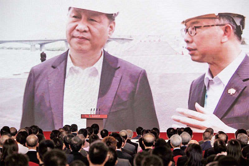 港珠澳大橋在10月23日舉行通車儀式,鄭曉松亦已被安排出席,在「盛事」前的敏感時刻墜樓,十分蹊蹺。(AFP)