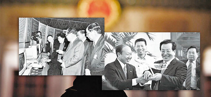 海航背後的政治大佬究竟是誰?(左圖)海航創業時的關鍵人物劉劍鋒與江澤民關係密切。(右圖)2006年4月20日曾慶紅會見海航董事長陳峰。(新紀元合成圖)