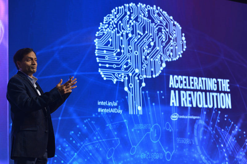 在大數據應用領域的推進、人工智能(AI)技術的聯合研發方面,日印雙方也達成協議。圖為2017年4月在印度班加羅爾舉行的英特爾人工智能(AI)論壇。(AFP)