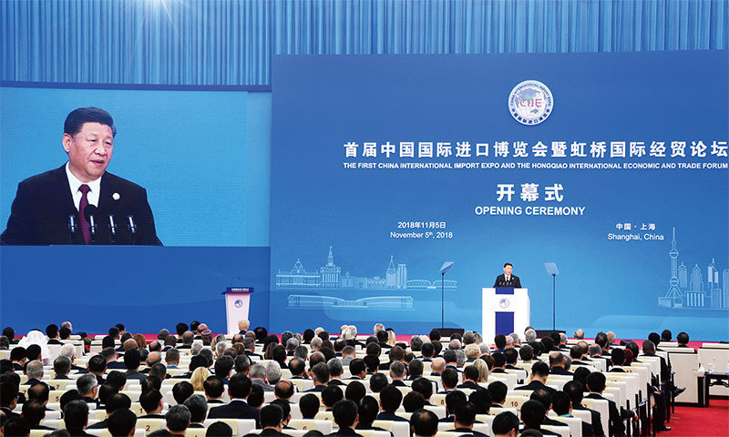 11月5日習近平在上海出席首屆進口博覽會開幕式。(AFP)