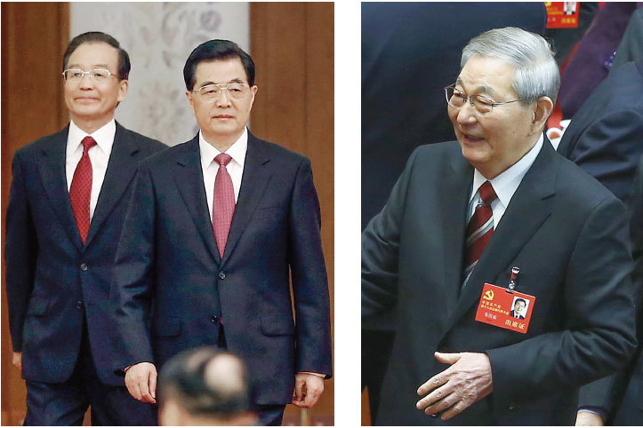 政治局會後第二天,習陣營重要元老胡錦濤、朱鎔基、溫家寶同習、李等現任高層一同現身或「露面」,釋放支持習、李當局的信號。