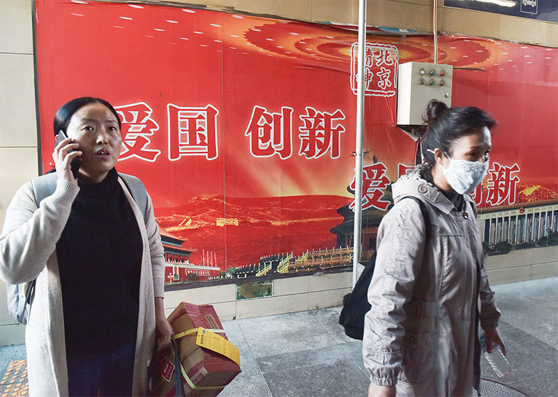 中美貿易戰本質上是政治體制與意識形態之戰,唯有拋棄中共獨裁體制與意識形態,才能根本上避免中國社會危機的全面爆發。圖為北京地鐵站。(AFP)
