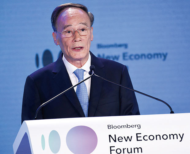 11月6日,王岐山在新加坡「中美新經濟論壇」上,強調「國家應相互尊重彼此的發展道路」,即表示制度不變。(AFP)