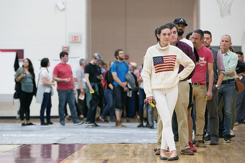 中共不惜代價干預和破壞美國中期選舉,因此選前的特習通話,有可能是特朗普的一個緩兵之計,確保11月6日的中期選舉就不受干擾。圖為喬治亞州的一處投票點。(Getty Images)