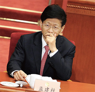 前中共政法委書記孟建柱(圖)是孟宏偉的上司之一,如今孟宏偉突然出事,會否牽連孟建柱,仍需觀察。(AFP)