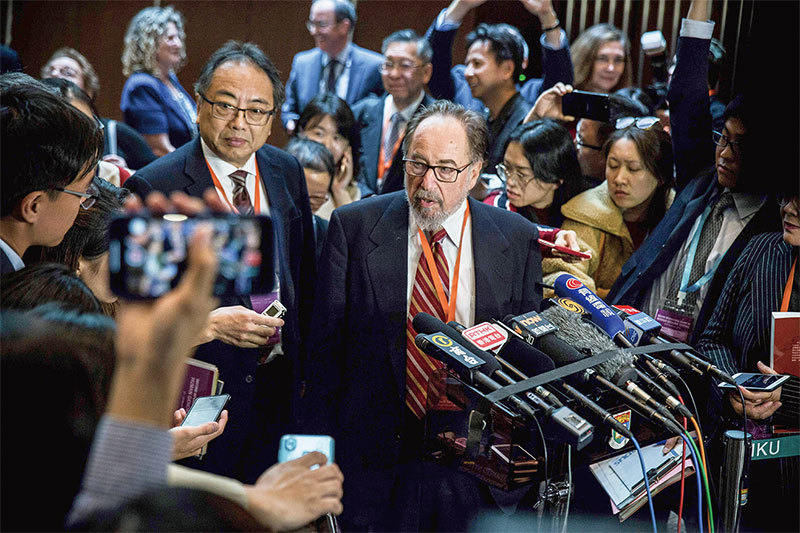 在峰會閉幕式上,峰會主席、前諾貝爾醫學獎得主大衛.巴爾的摩(David Baltimore)定性說:「對生殖細胞的編輯在臨床上的任何應用是不負責任的。」(AFP)