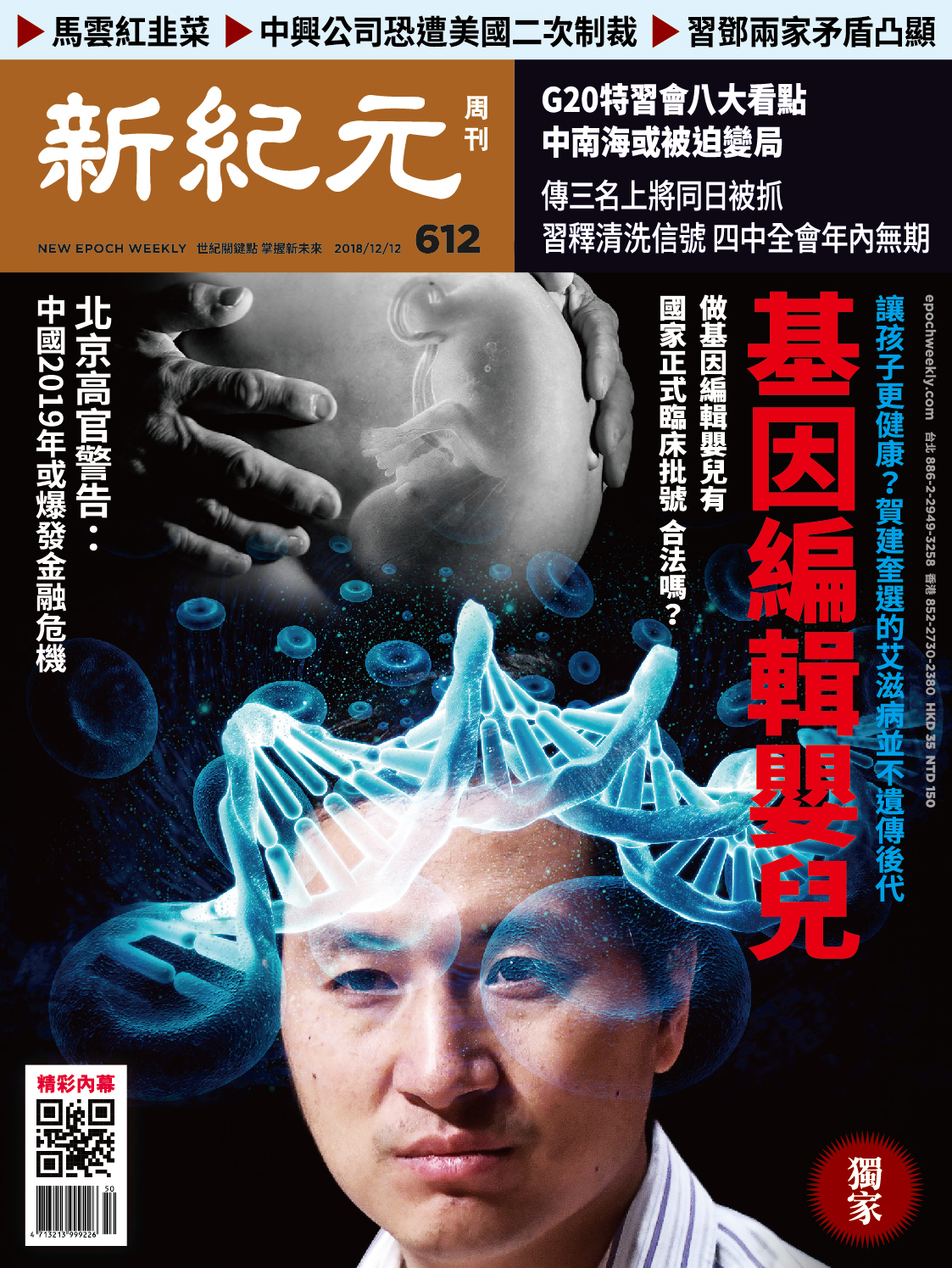 第二屆人類基因組編輯國際峰會從11月27日到29日在香港召開,就在此前一天,11月26日,中共喉舌《人民日報》的官方網站人民網,刊發了〈世界首例免疫愛滋病的基因編輯嬰兒在中國誕生〉的報導。