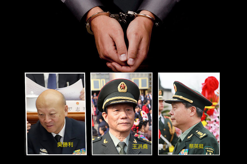 11月30日,多家海外中文媒體引述未經證實的消息稱,北京當局在11月29日抓了三名退役上將,他們是吳勝利、蔡英挺、軍委王洪堯。(新紀元合成圖)