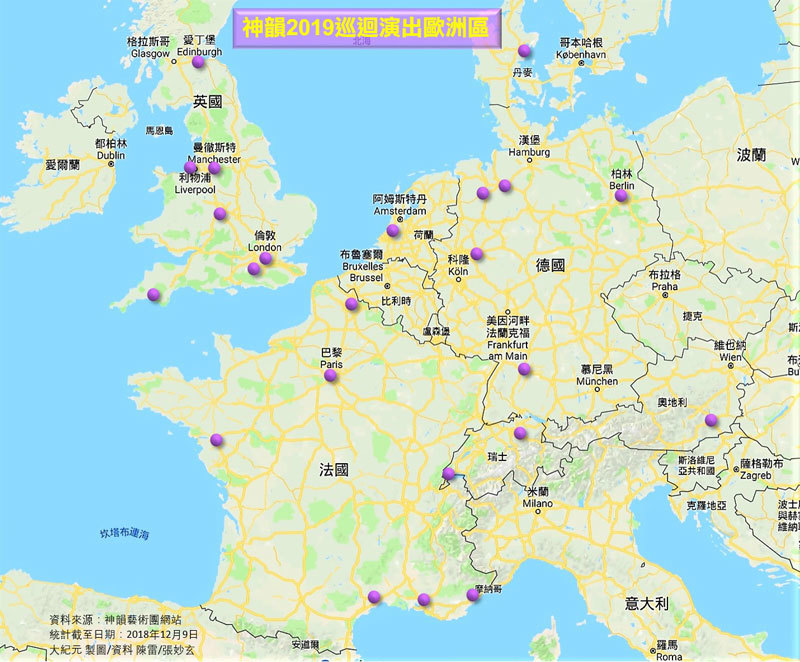 巡演歐洲英、法、德等7國 覆蓋23個城市