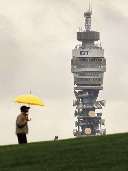 英國最大通信營運商英國電信(British Telecom)已經宣布將華為排除在5G網之外,並在2年內將該公司4G移動網路核心中所有華為的設備拆除。圖為英國電信塔。(Getty Images)