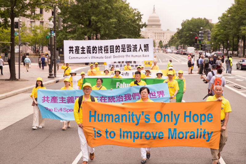 2018年6月20日,部分法輪功學員在美國首都華盛頓舉行反迫害大遊行。(戴兵/大紀元)