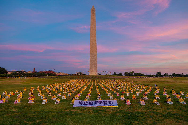 2018年7月19日,部分法輪功學員在華盛頓紀念碑前點燃燭光,悼念19年來被中共迫害致死的大陸法輪功學員。(Mark Zou/大紀元)