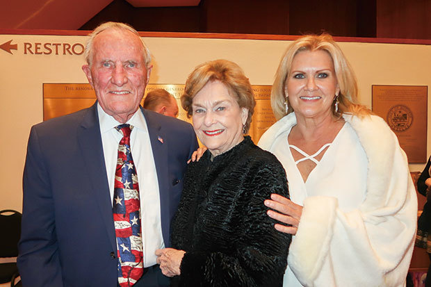 2018年12月28日晚,美國石油大亨George Strake Jr.(左)與夫人(中)、女兒觀看了神韻演出。(攝影/唐薇)