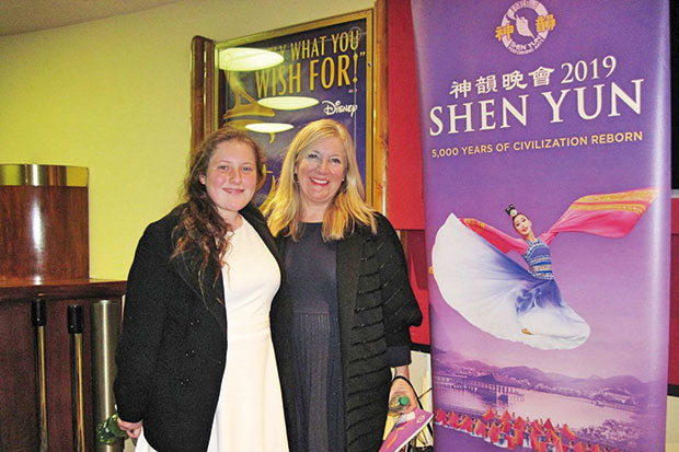 曾五度獲艾美獎殊榮的舊金山灣NBC電視臺記者Marianne Favro與女兒Sofia Kappen對神韻演出讚不絕口。(大紀元)