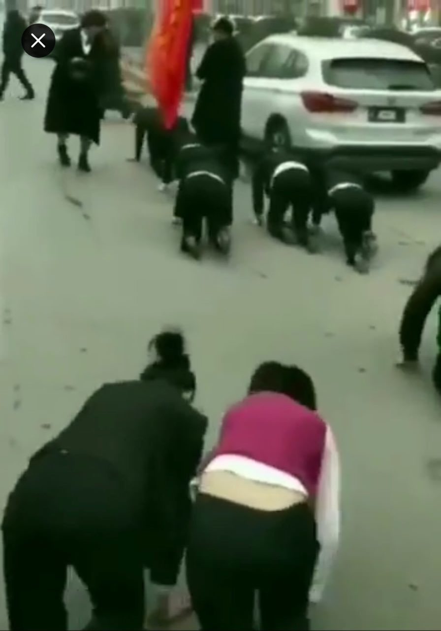 札评:有次看到业绩不好的员工们在台上被负责人用板子狠抽屁股,一女员工痛得跳起来,结果又多挨了几下。这一次,另一公司让员工们在大马路上跪地爬行……。 pic.twitter.com/lVFKQB540x