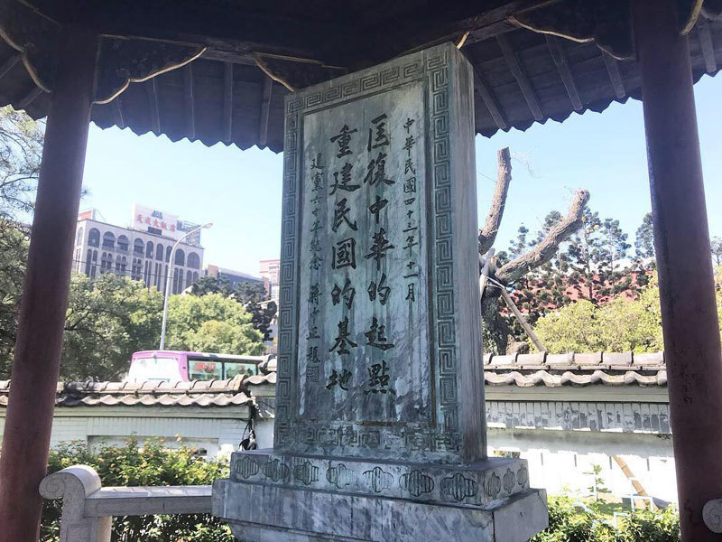 園內的碑亭裡頭,更有先總統蔣公1954年親題的碑文──「匡復中華的起點,重建民國的基地」。