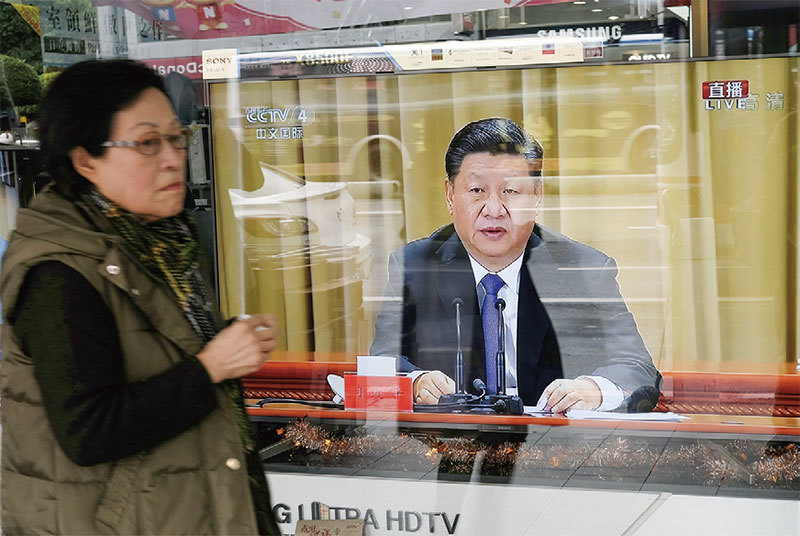 1月2日臺北街頭一電視播放習近平在「告臺灣同胞書」發表40周年紀念會上講話。(AFP)