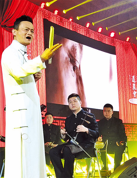 作為一名戲曲愛好者,1月10日晚,馬雲著一襲長衫白褂,在企業家新年晚會上唱了一曲《空城計》。(大紀元資料室)