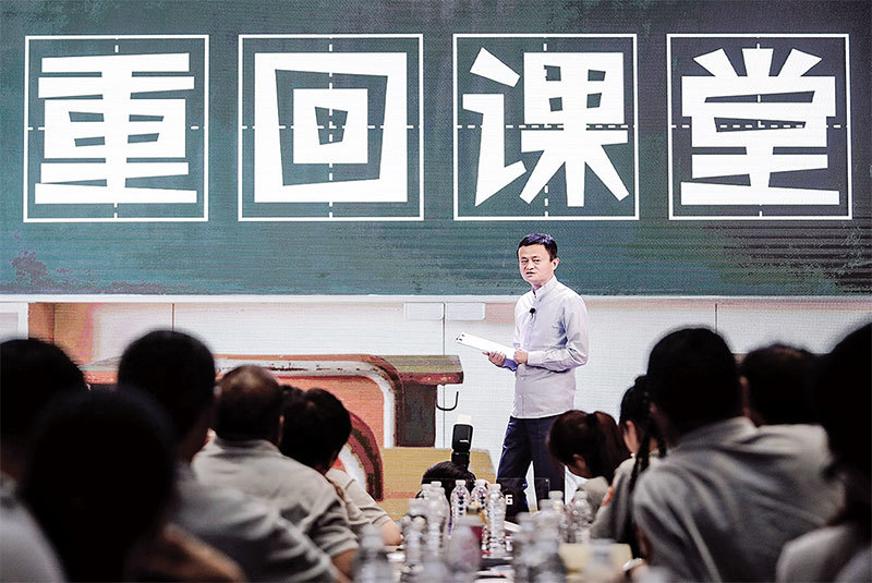 馬雲在「馬雲鄉村教師獎」「重回課堂」的活動中,曾表示,「不要貪戀權力」,否則「會惹出事的」,故而急流勇退,棄財保命。(大紀元資料室)