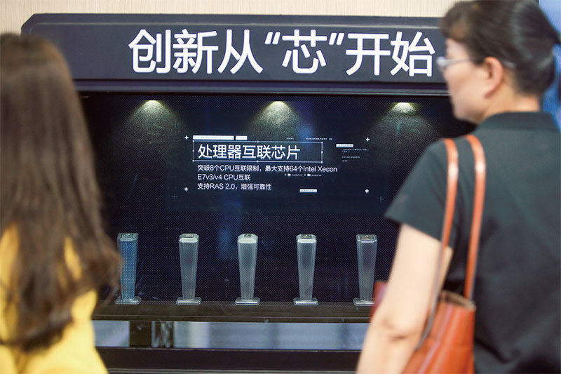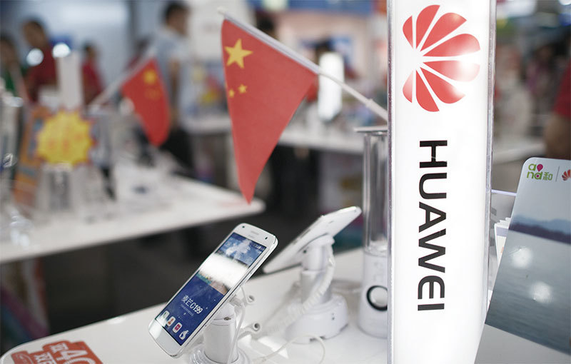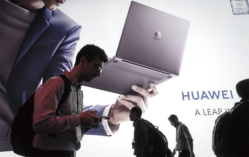 華為利用模仿抄襲出類似產品,比如晶片,假如華為真的能生產出核心晶片,那何必還要從美國進口呢?圖為2018年4月,福州一國際會展的華為展臺。(大紀元資料室)