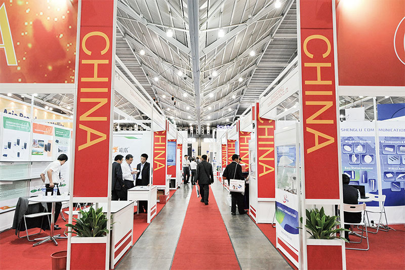 專業人士透露,華為可謂共產黨扶植的超大型企業,必須聽共產黨的指示偷取機密。圖為一亞洲電信展的中國展區。(AFP)