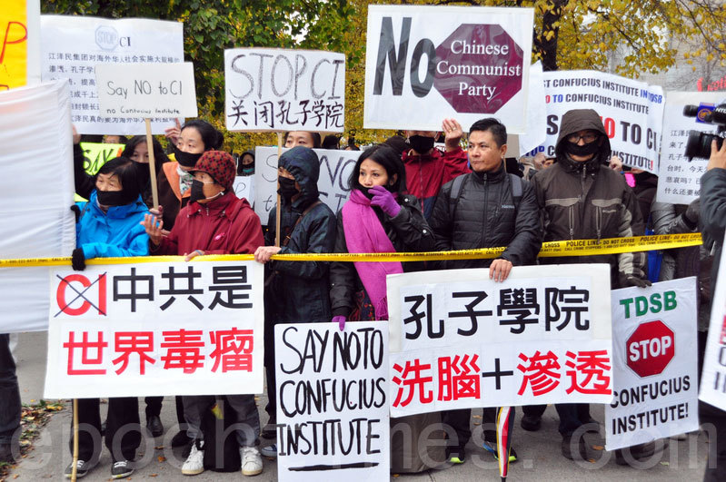 在過去的一年裡,美國至少有10所大學已經關閉或宣布將關閉中共政府資助的孔子學院。圖為多倫多公校教育局外,民眾呼籲取消孔子學院。(周行/大紀元)