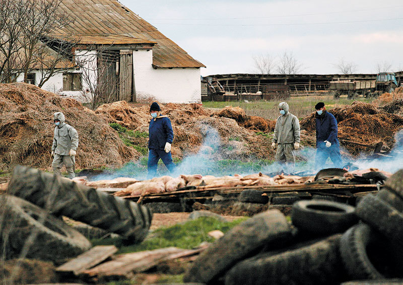 非洲豬瘟是一種高度傳染性疾病,中國首例病毒株可能來自俄羅斯。圖為2009年俄羅斯一個村莊消滅已經感染非洲豬瘟的豬。(Getty Images)