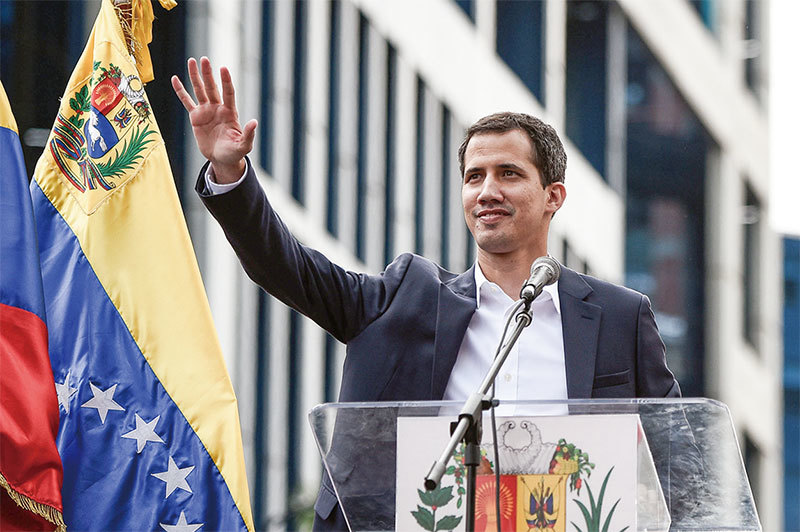 委內瑞拉反對派領袖及國民議會議長瓜伊多1月23日在委內瑞拉舉行的反對馬杜羅大規模抗議示威活動中宣布自己為代總統。(AFP)